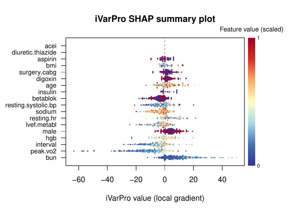 The shap.ivarpro function provides SHAP-like beeswarm